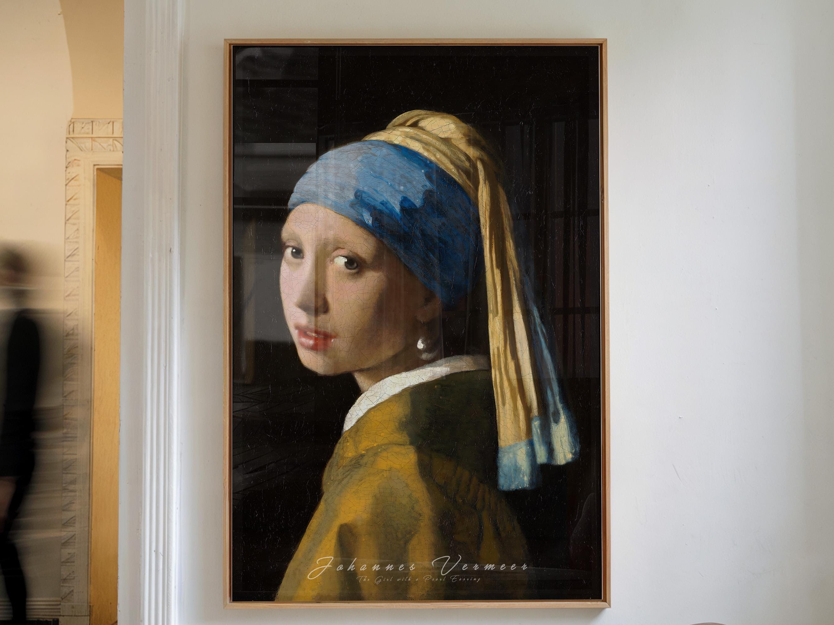 girl with a pearl earring, vermeer poster, baroque art print, classic art decor, vintage wall art, museum artwork print, dutch golden age art, aesthetic wall decor, famous painting print, timeless portrait art, printable wall art, renaissance decor, elegant wall poster