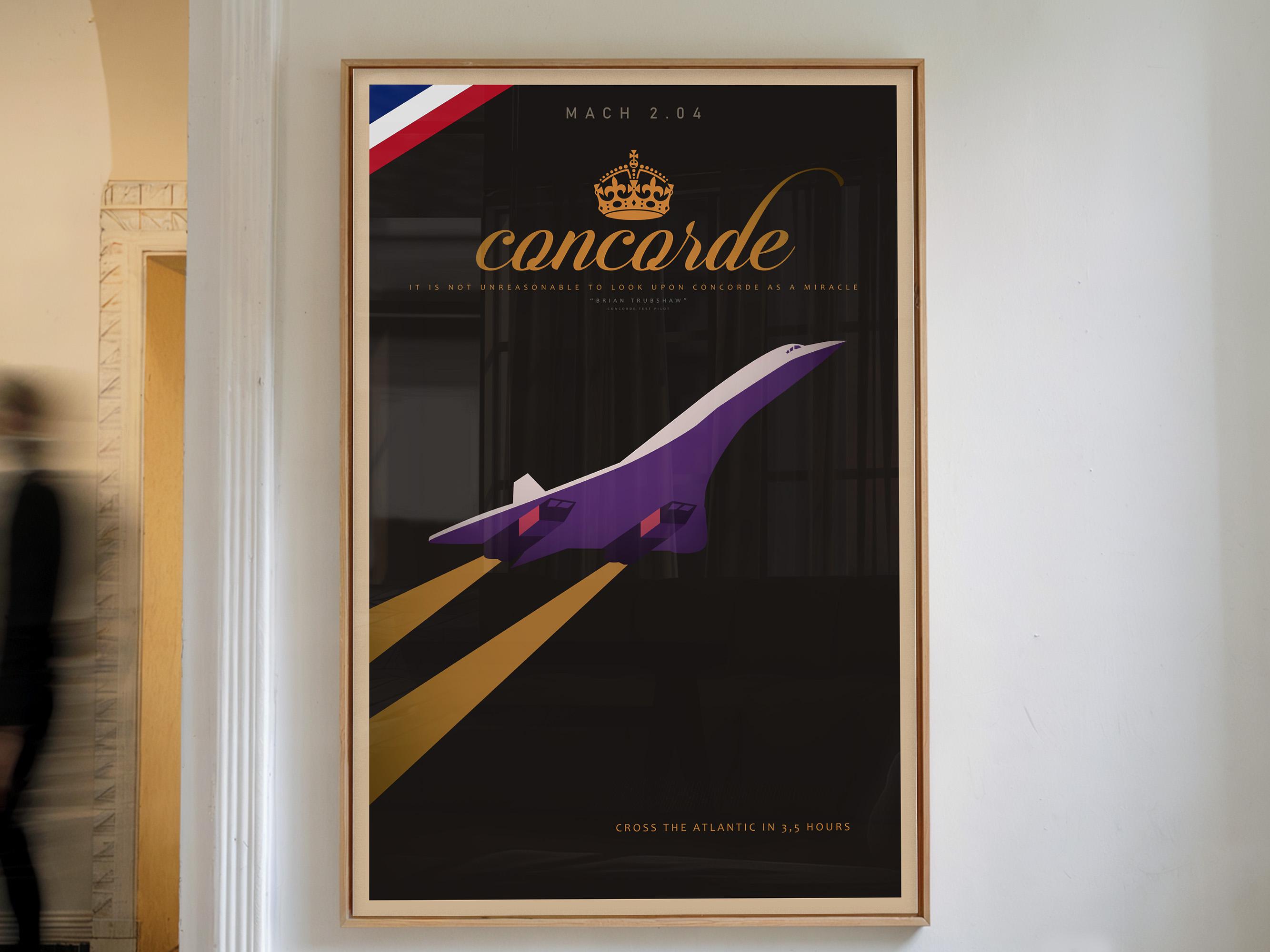 Celebrate the elegance and speed of the legendary Concorde with this stylish vintage-inspired poster. Featuring bold colors, clean lines, and a tribute to Concorde’s record-breaking transatlantic journeys, this artwork captures the spirit of one of aviation’s greatest icons. Perfect for aviation enthusiasts, retro art collectors, or anyone who dreams of crossing the Atlantic at Mach 2.04!