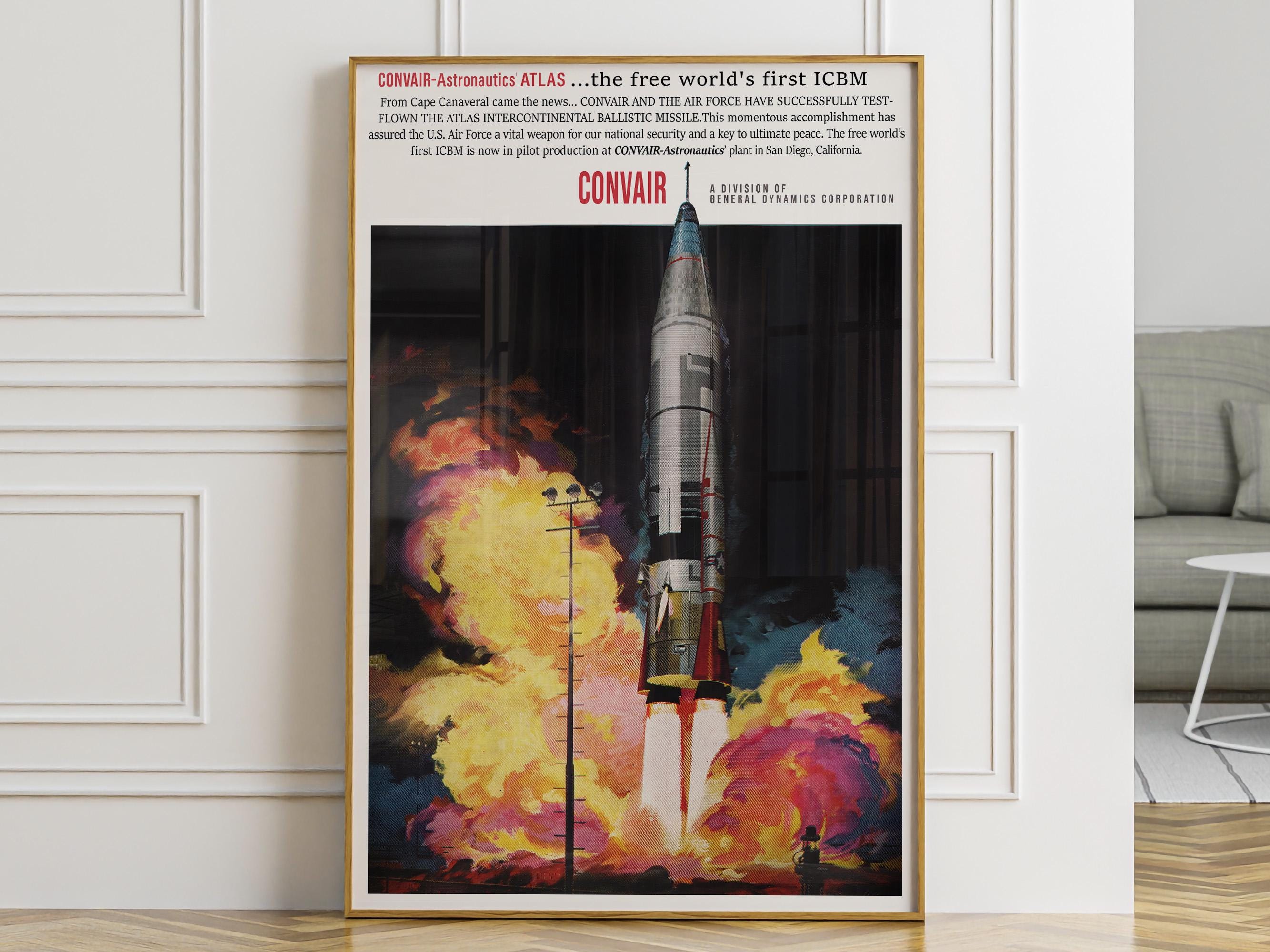 Convair Atlas "Free World's First ICBM" Print, Vintage Rocket Poster, Retro Science Ad, Military Space History Wall Decor