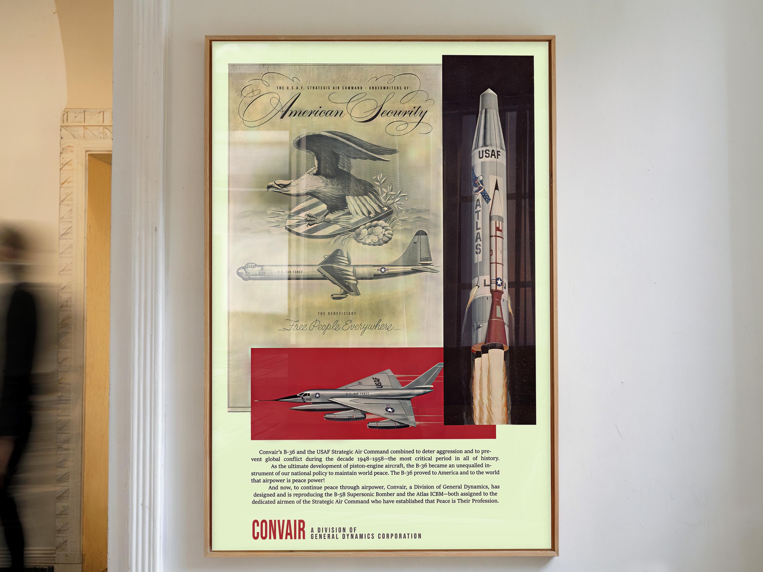 Highlights: Detailed illustrations of the aircraft and missile, USAF emblems, authentic period typography, and the "American Security" slogan.