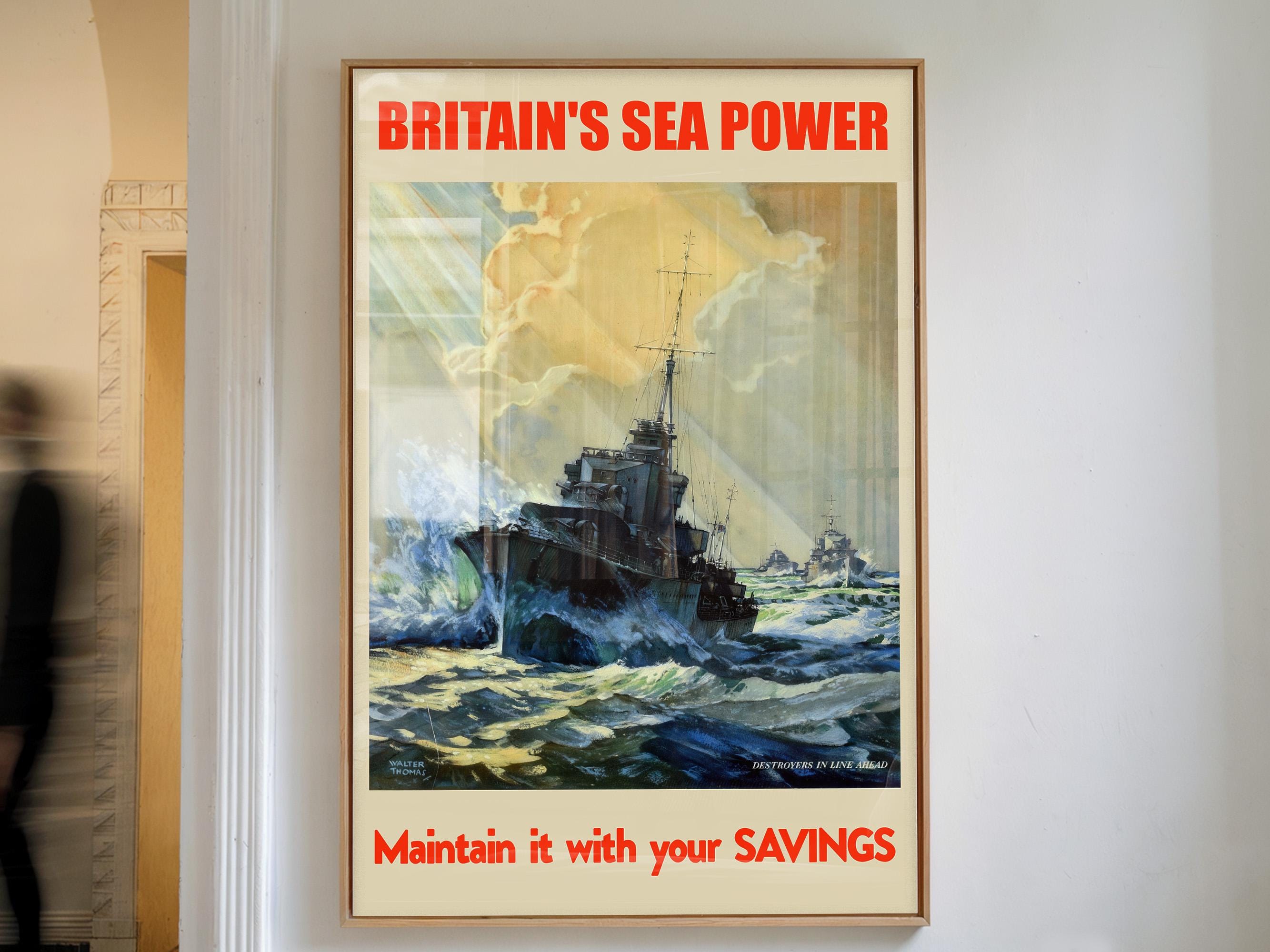WWII Naval Poster – Britain's Sea Power, Royal Navy Propaganda Art (Digital Download)