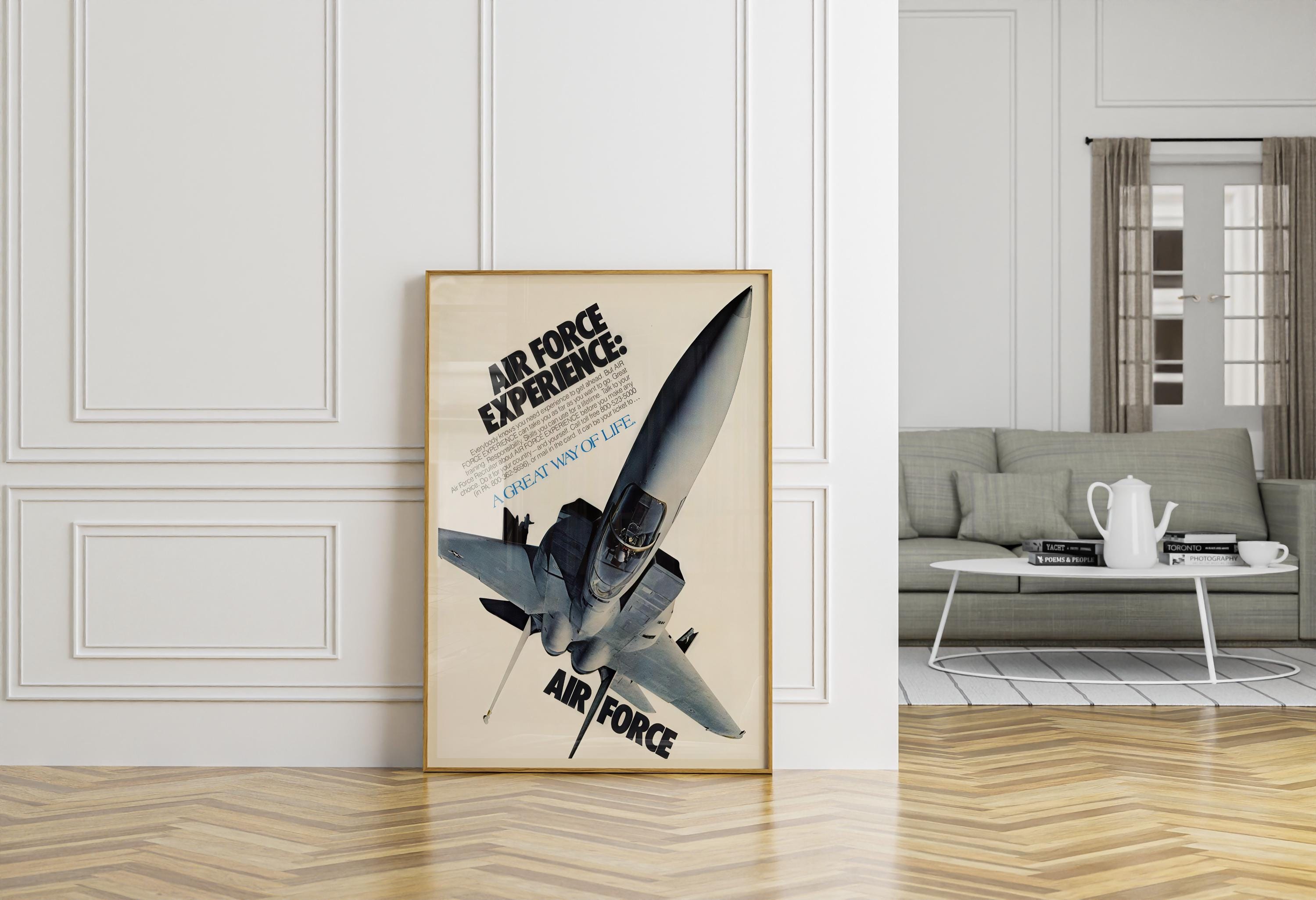 Originally created to inspire young aviators, it still radiates that 1980s optimism the belief that skill, courage, and discipline could take you anywhere. Its clean composition, minimal color palette, and striking typography make it timeless, equally at home in a modern apartment or a vintage-inspired workspace.