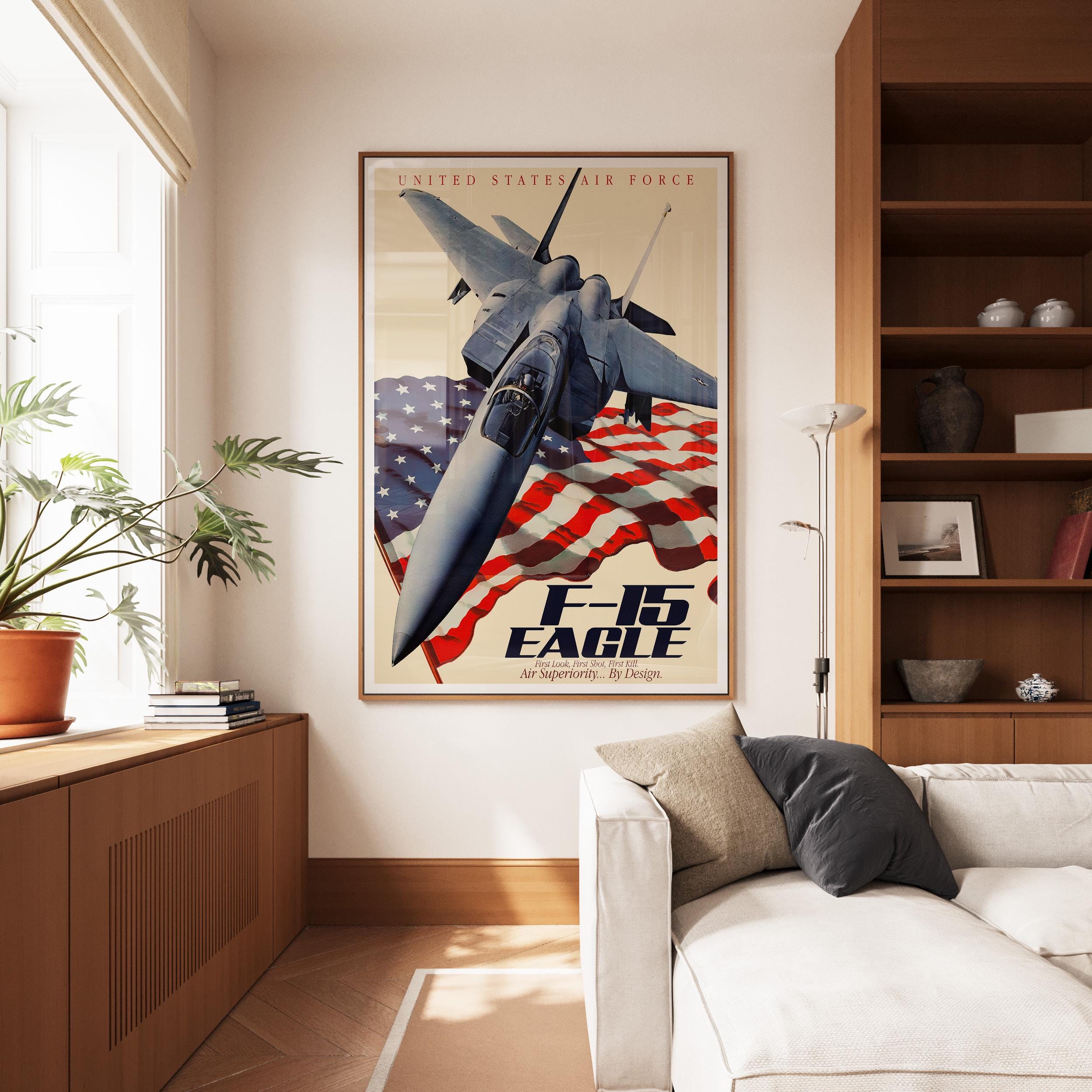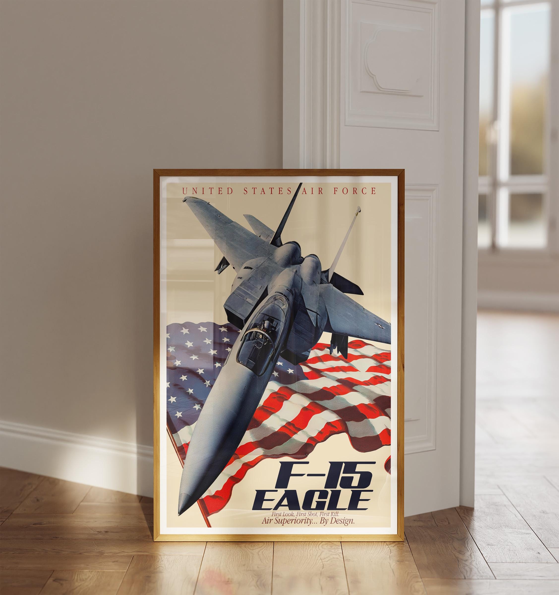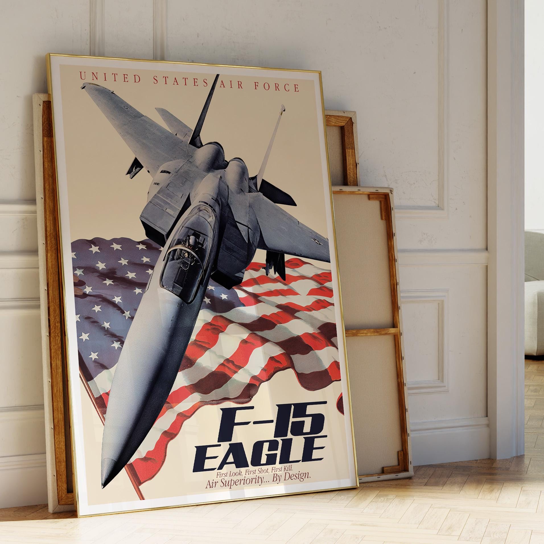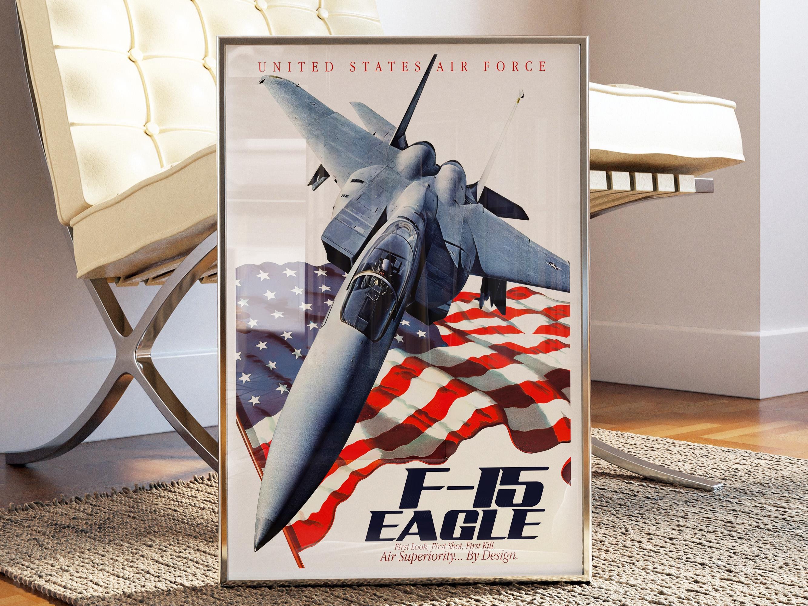 F-15 Eagle Jet Fighter Poster | USAF Air Superiority, Vintage Military Aviation Wall Art Gift