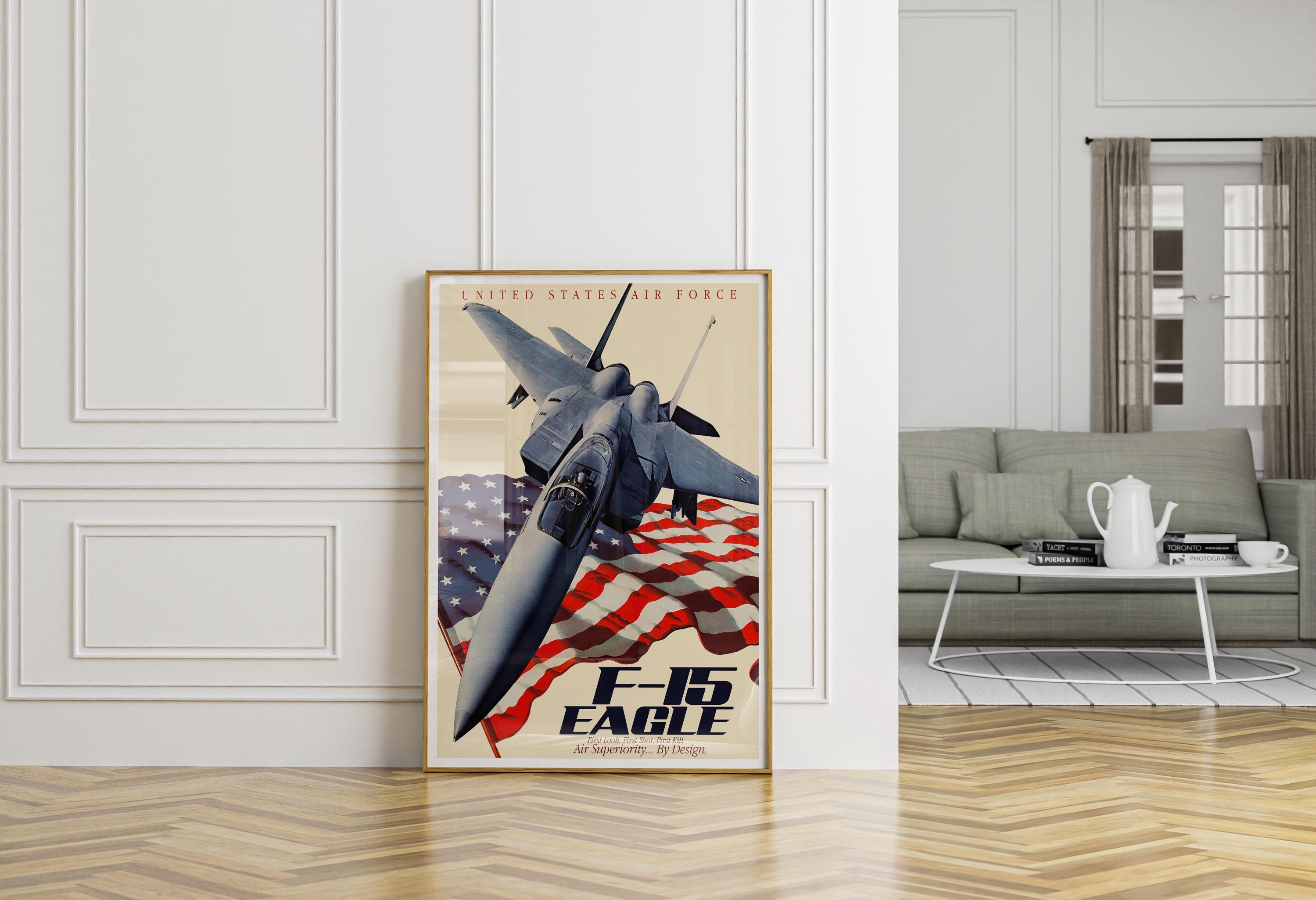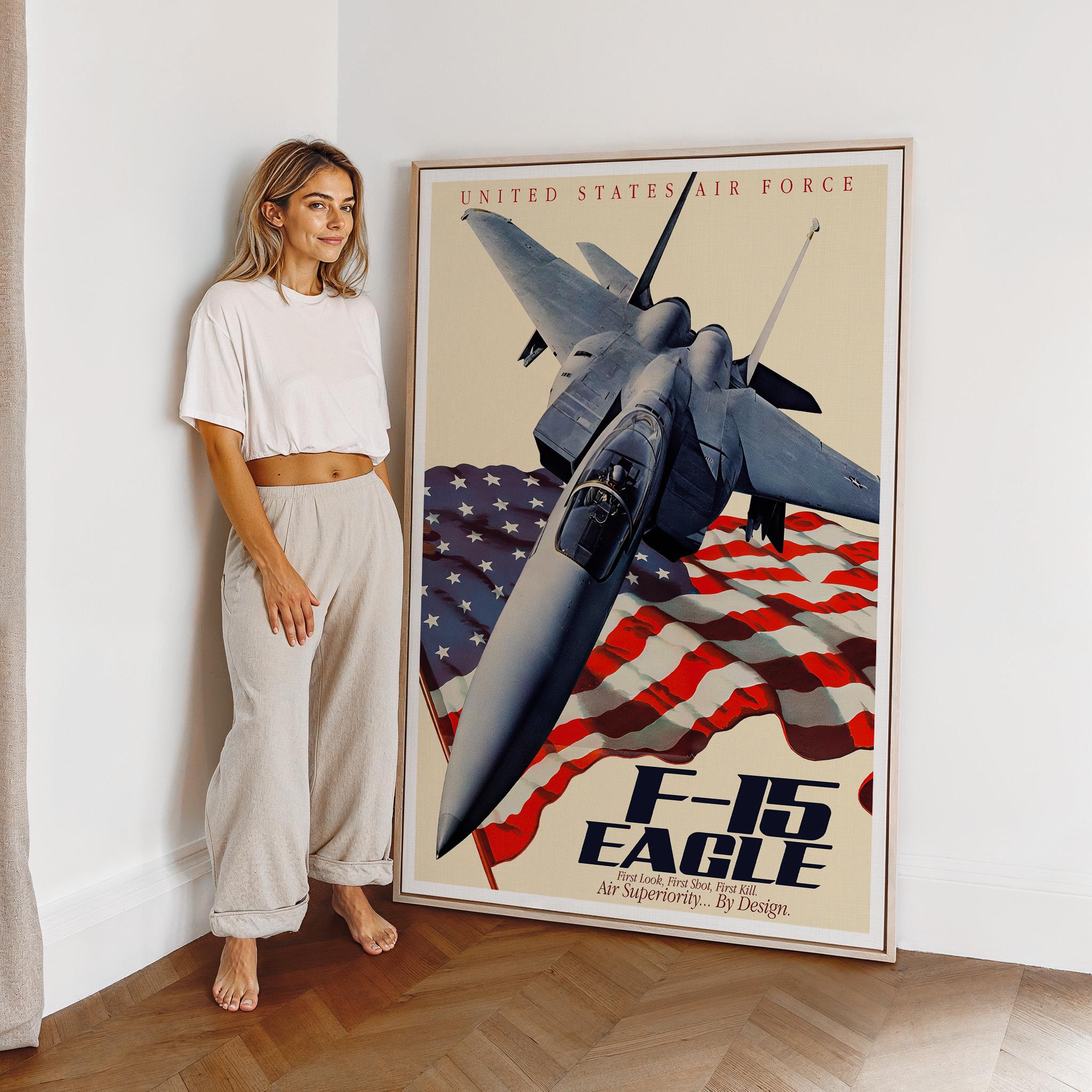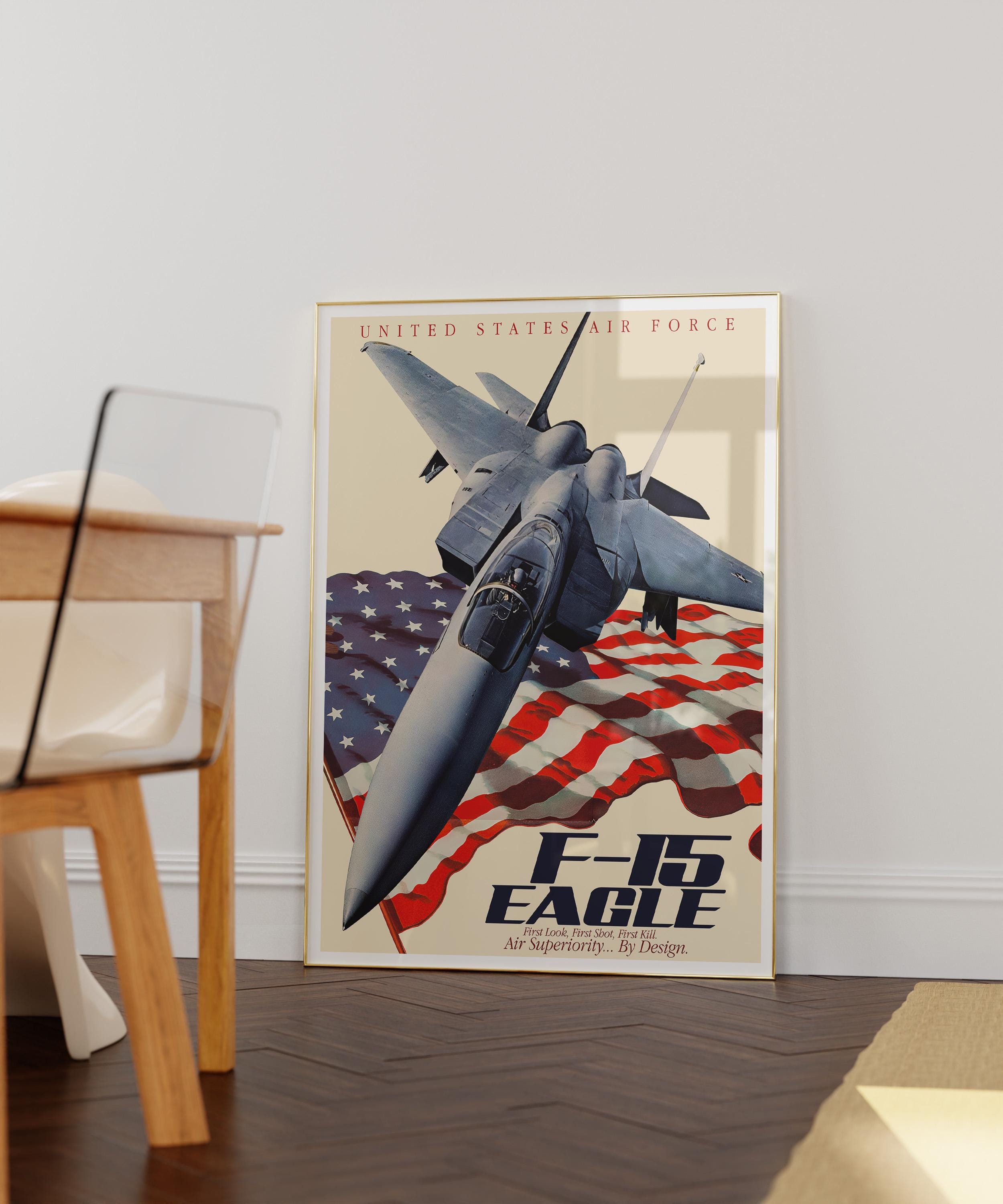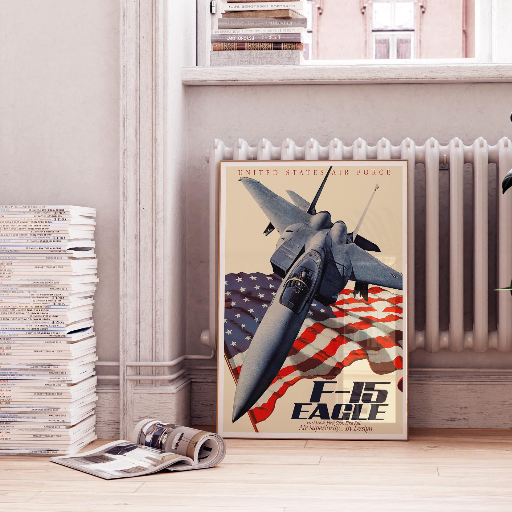 F-15 Eagle Jet Fighter Poster | USAF Air Superiority, Vintage Military Aviation Wall Art Gift
