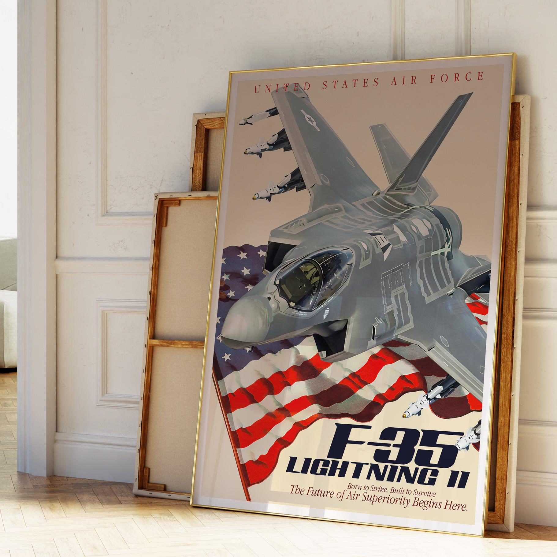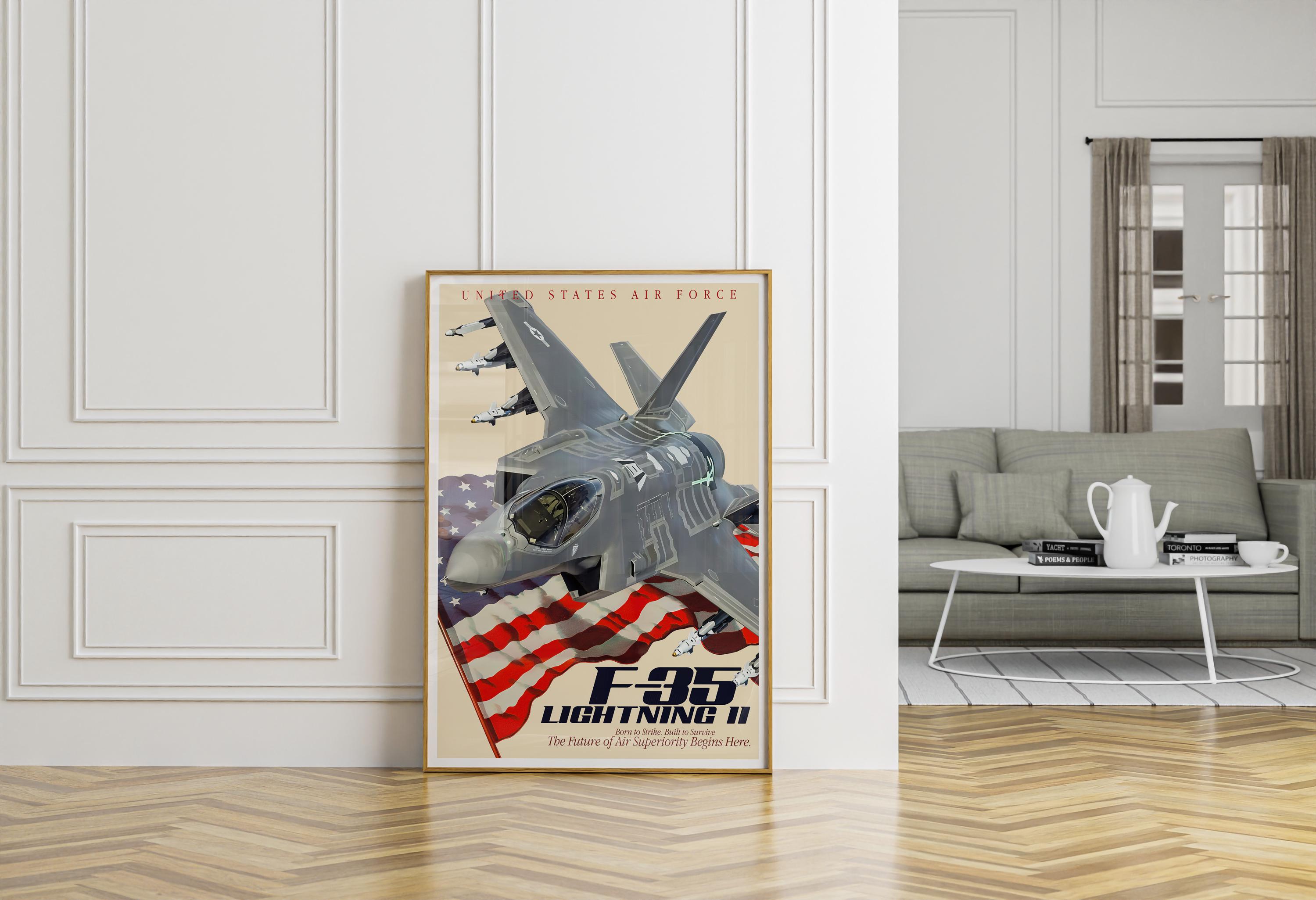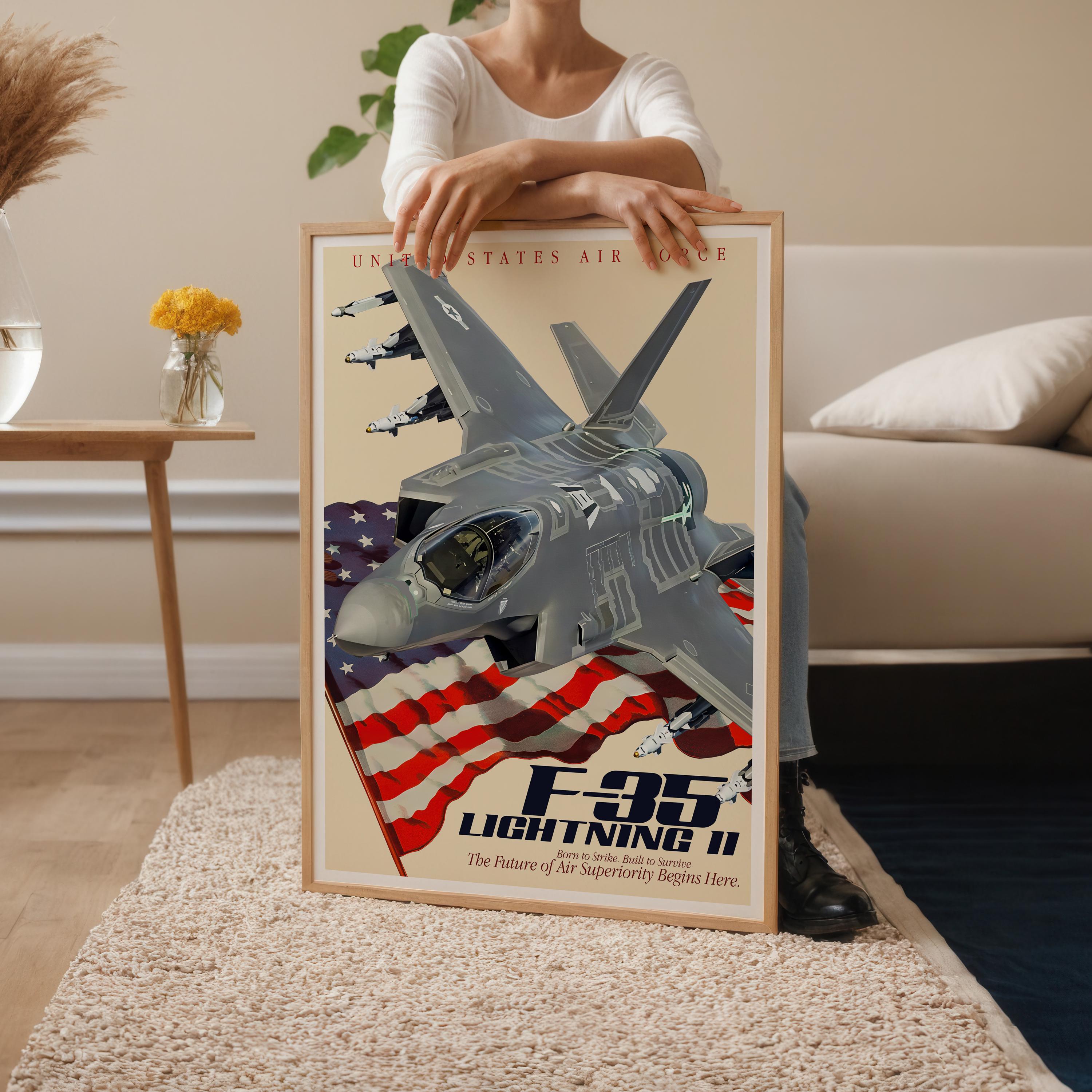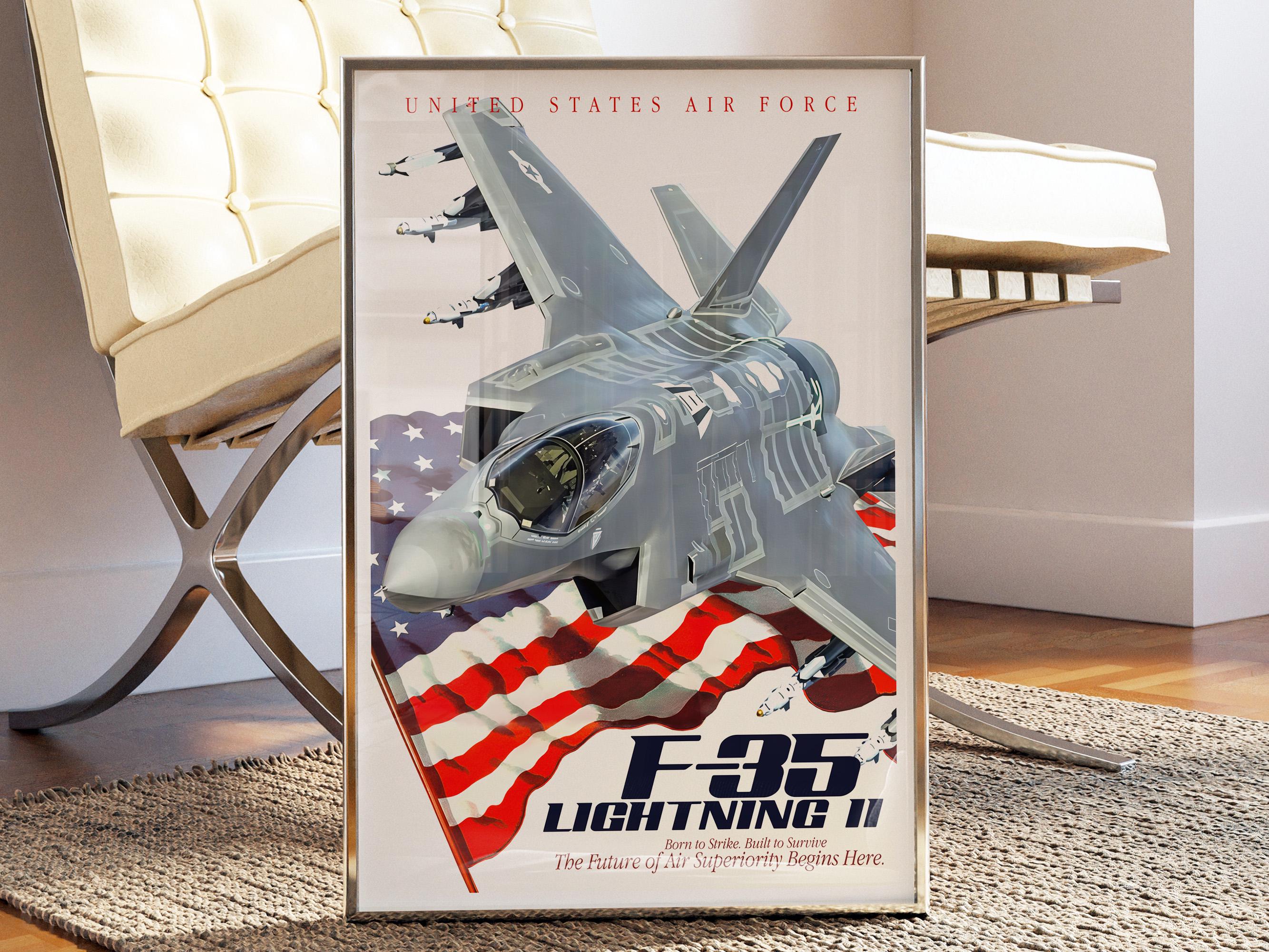 F-35A Lightning II Jet Poster | Modern Fighter Aircraft Wall Art, USAF Aviation Decor, Military Plane Gift