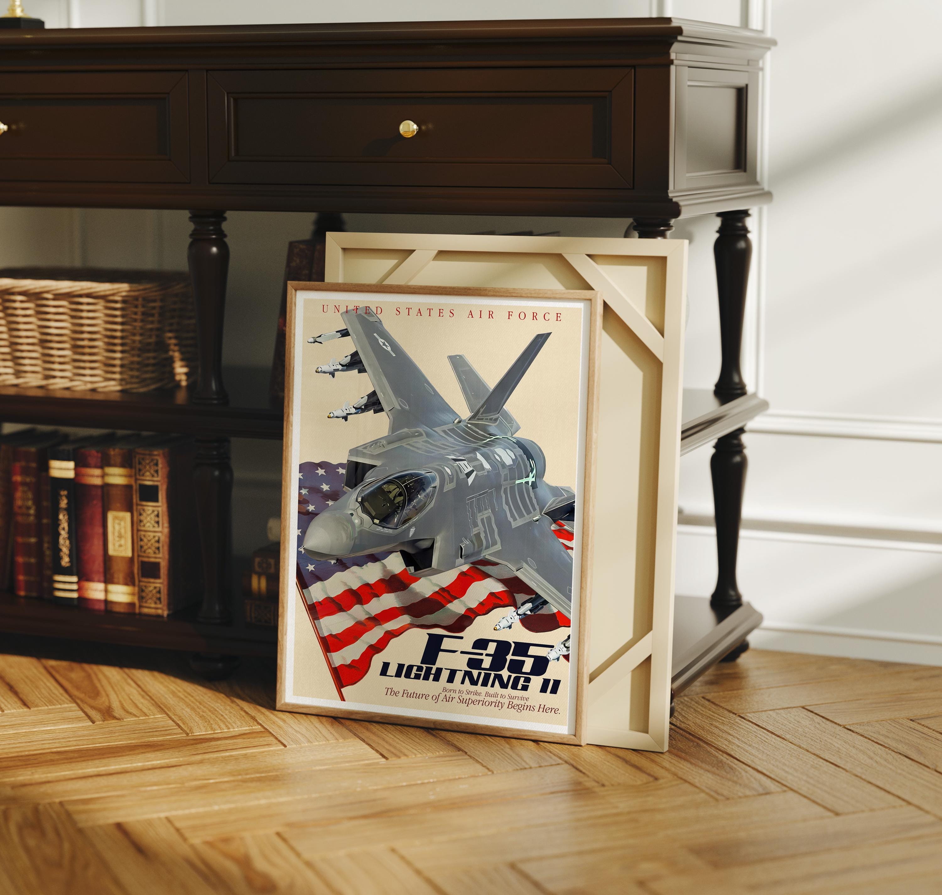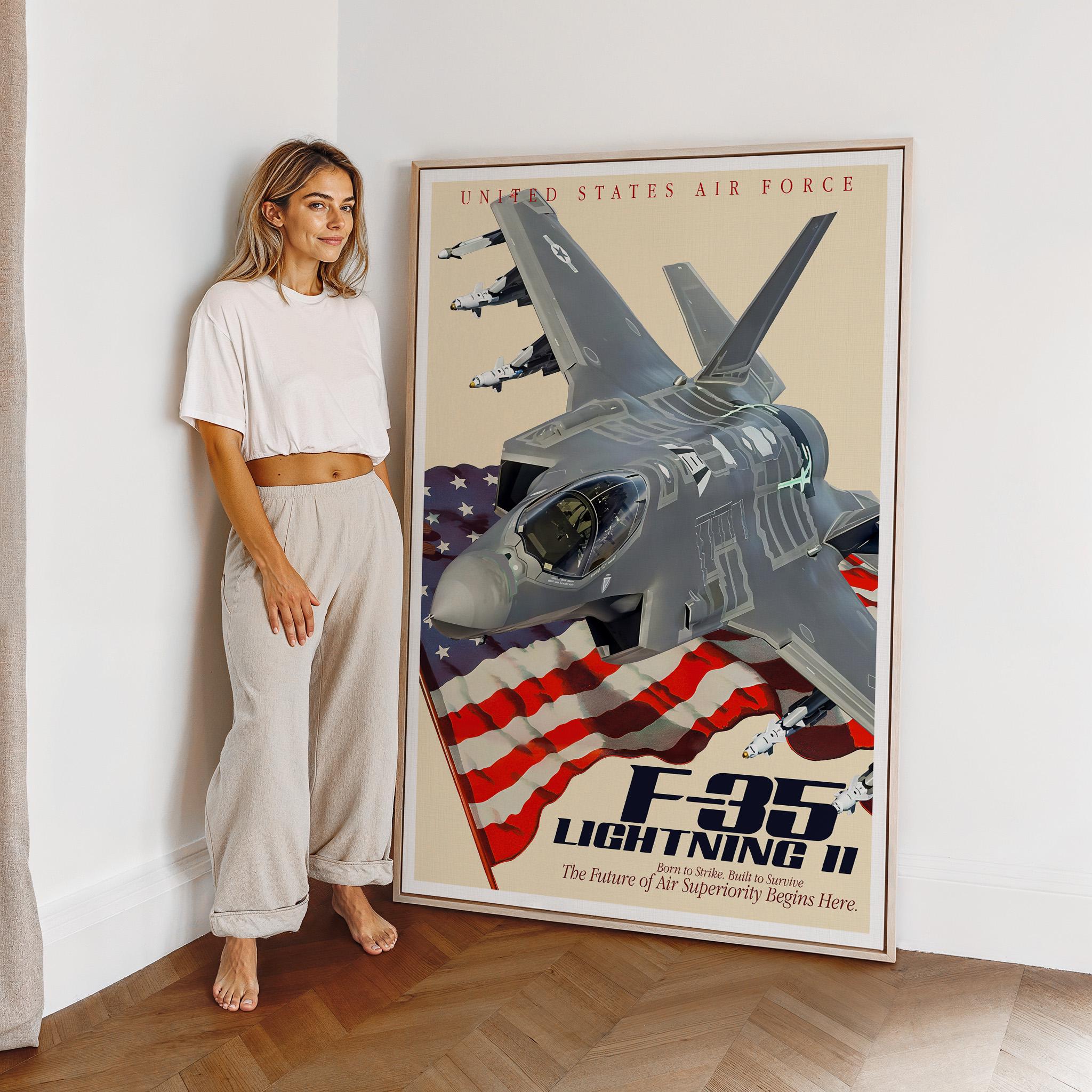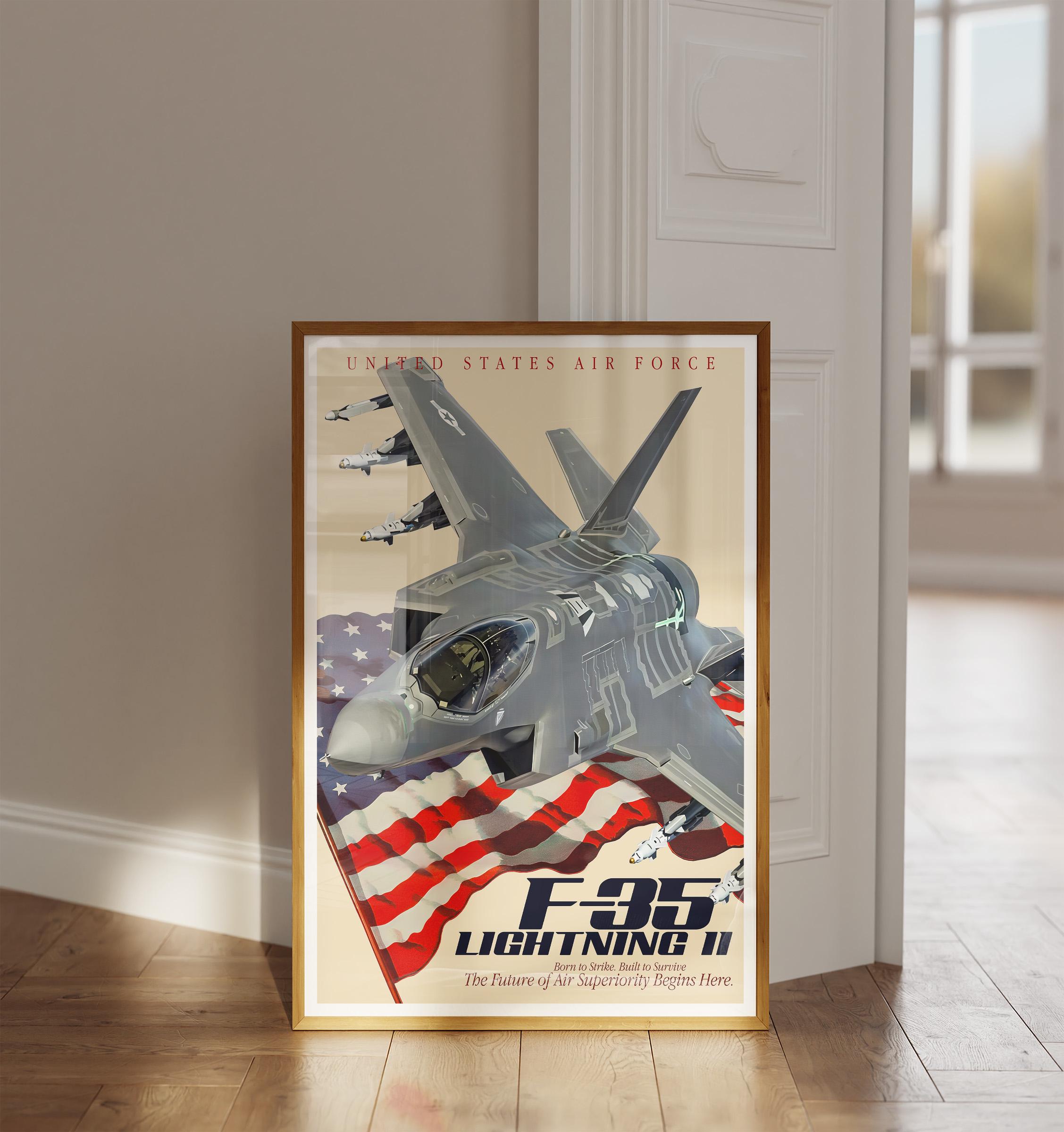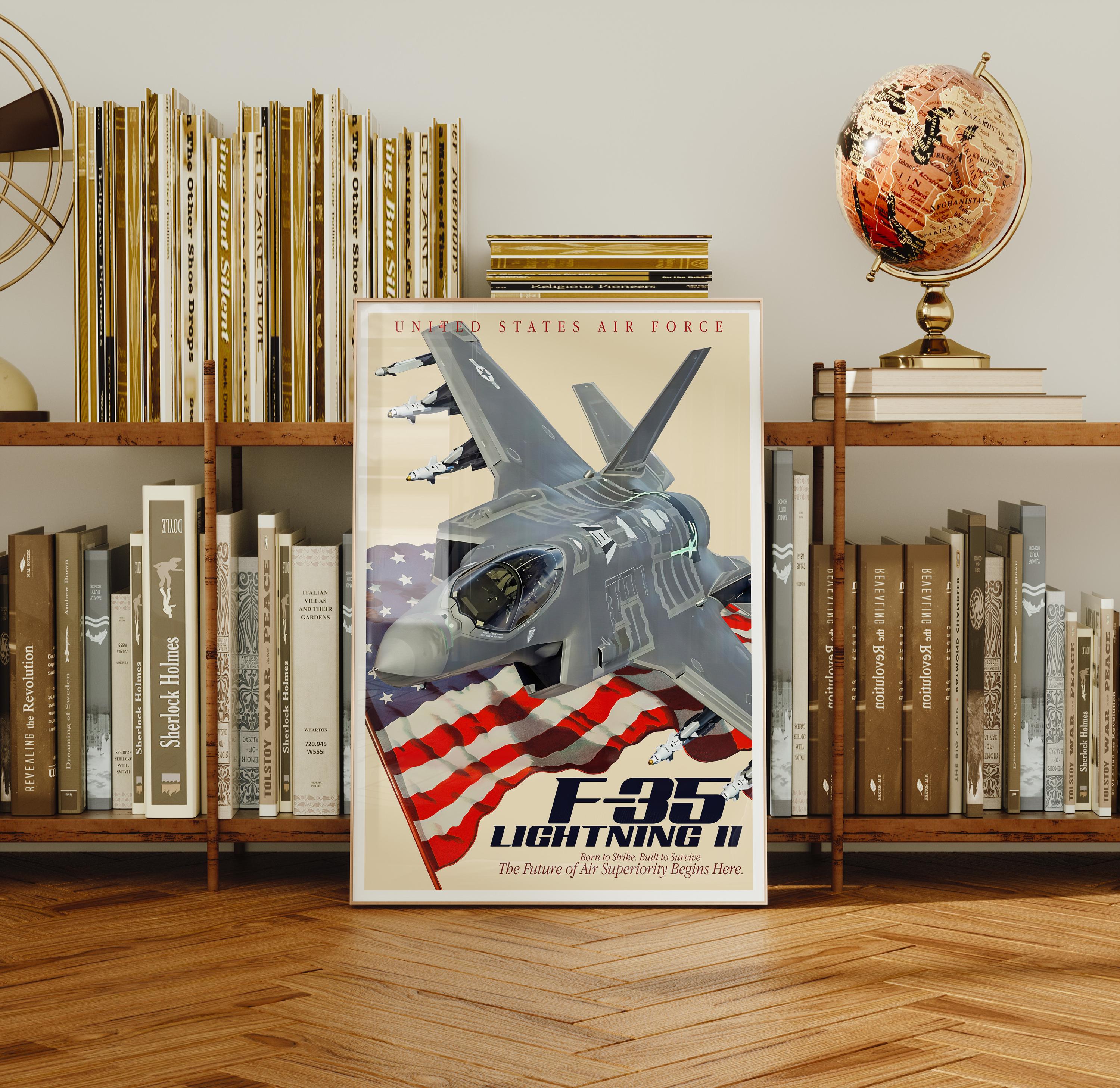 F-35A Lightning II Jet Poster | Modern Fighter Aircraft Wall Art, USAF Aviation Decor, Military Plane Gift