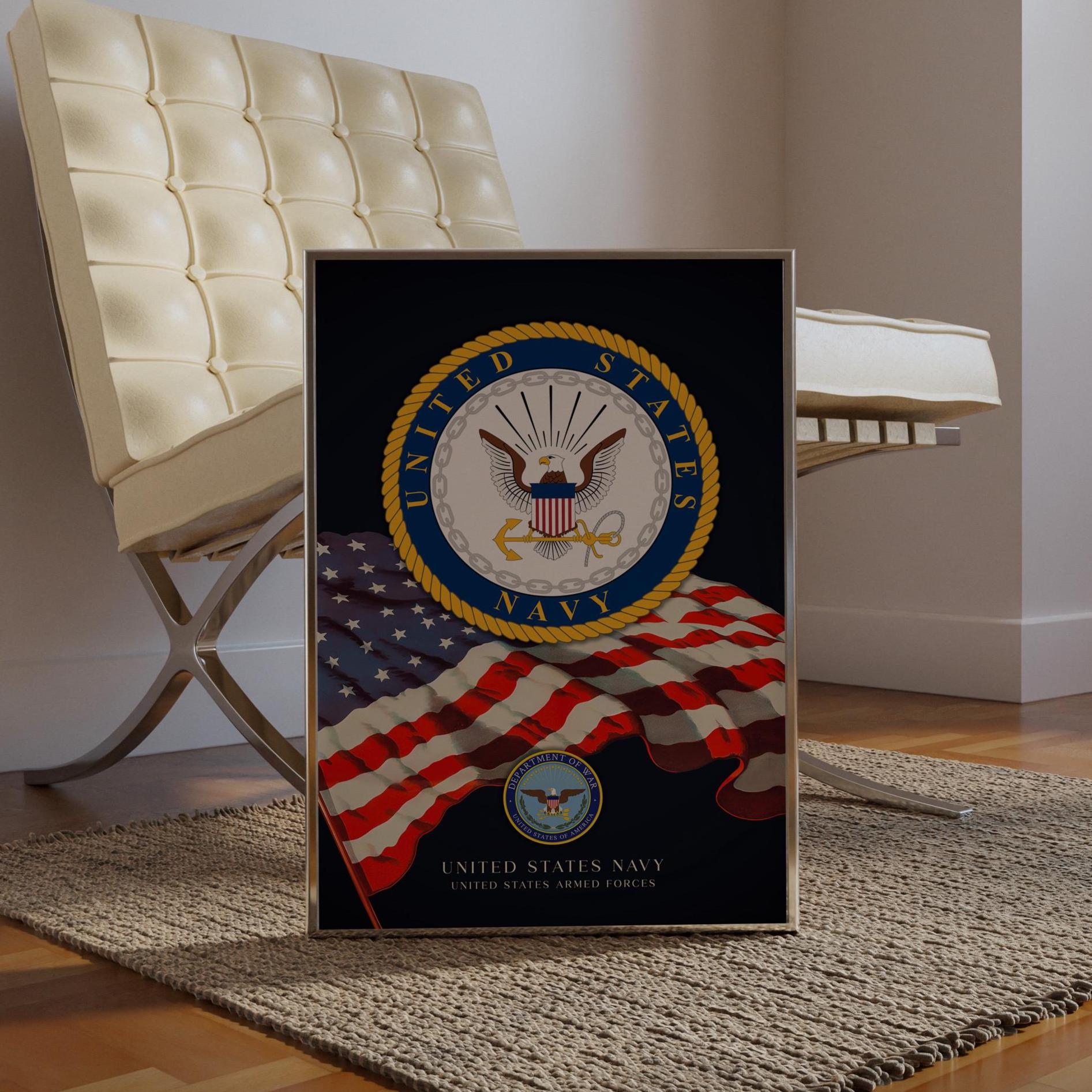 Perfect for Navy veterans, active-duty sailors, or anyone who cherishes the spirit of the U.S. Armed Forces, this print adds a touch of patriotism and prestige to any space.