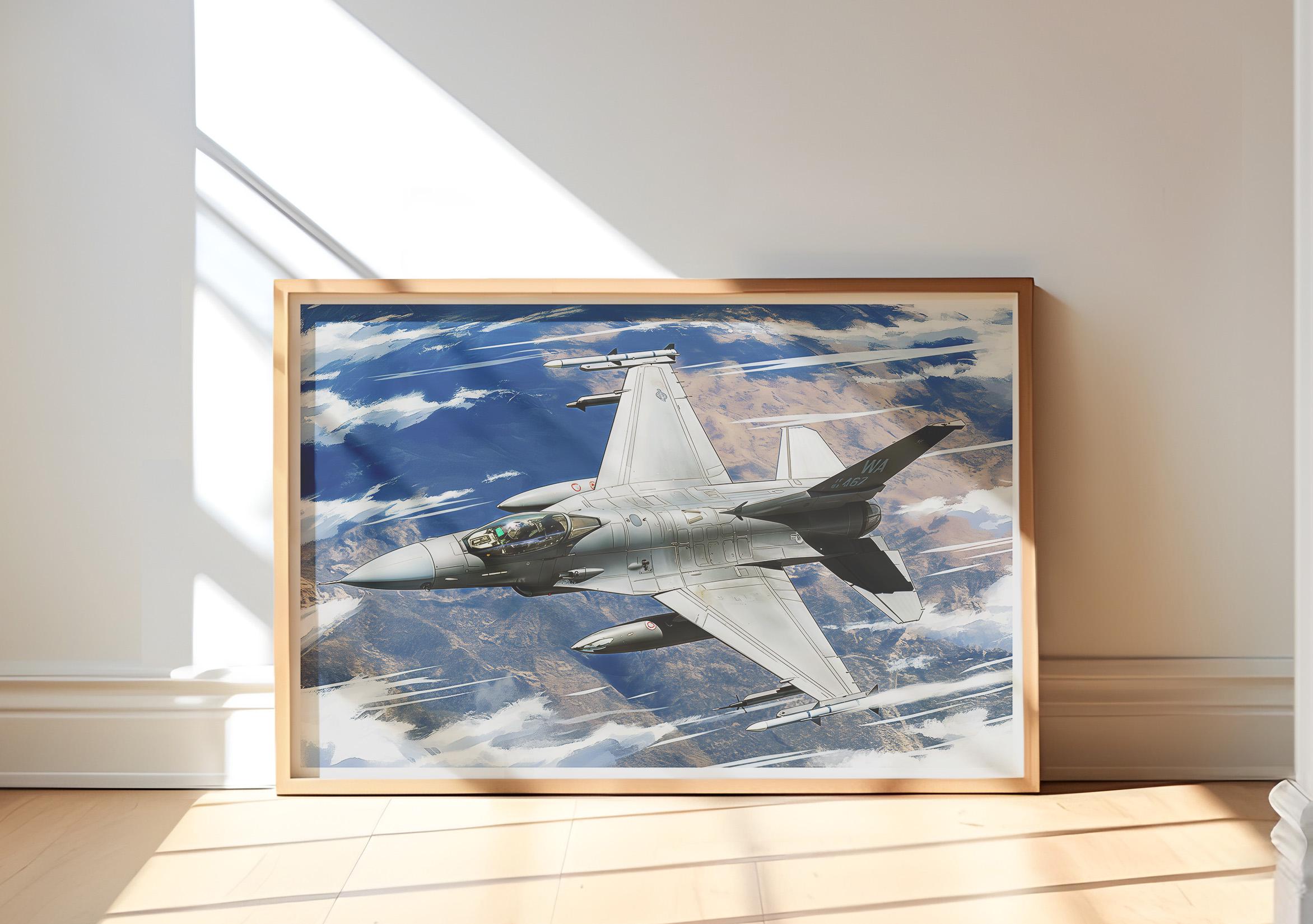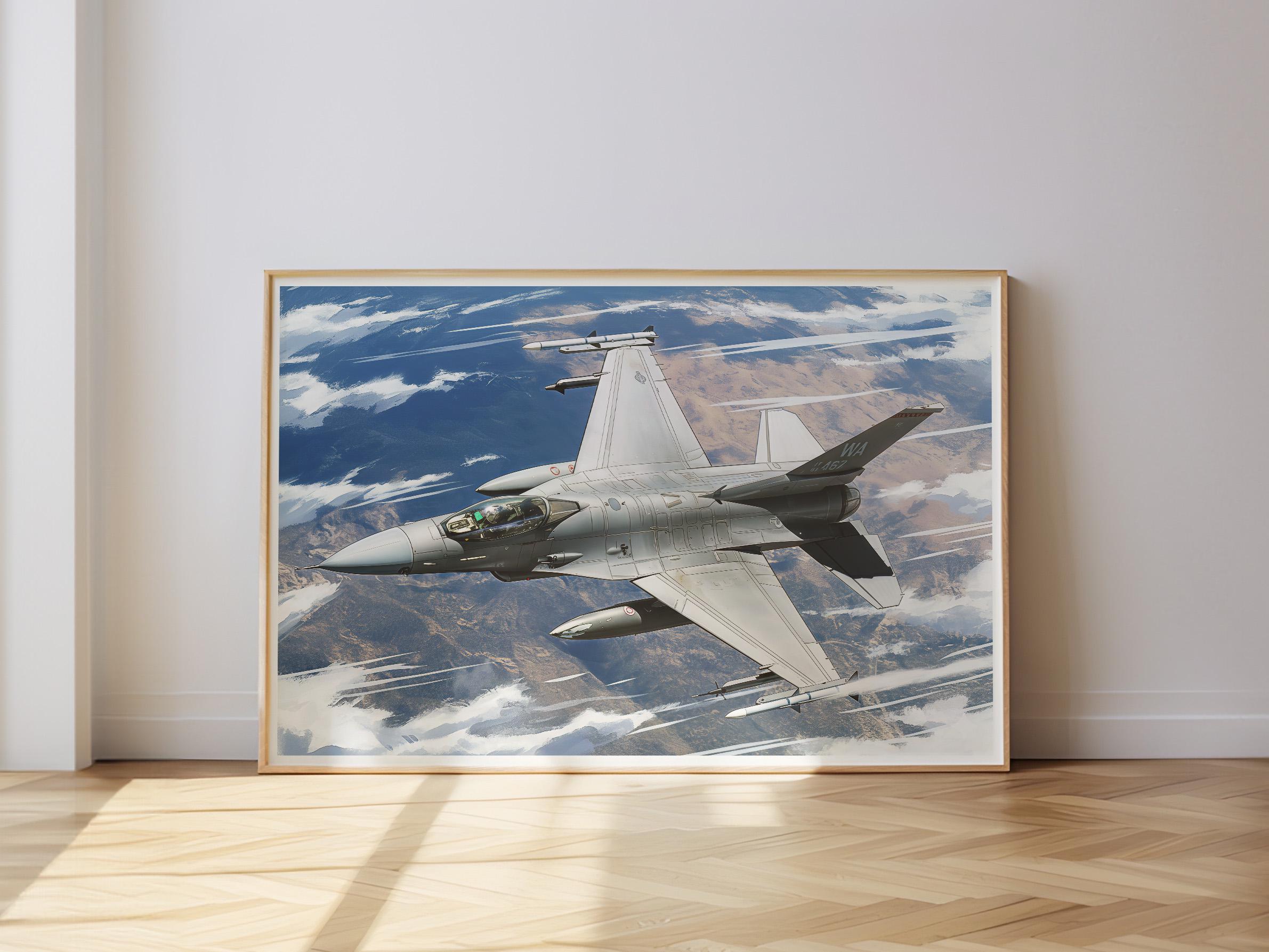 F-16 art, F-16 poster, Fighting Falcon print, jet fighter wall art, aviation artwork, military jet decor, aircraft illustration, pilot gift, air force wall art, fighter jet digital download, aviation enthusiast decor, aircraft poster, modern jet art, airplane wall print, aviation gift, jet plane art, digital aviation poster, aircraft wall decor, F-16 digital print, military aviation art