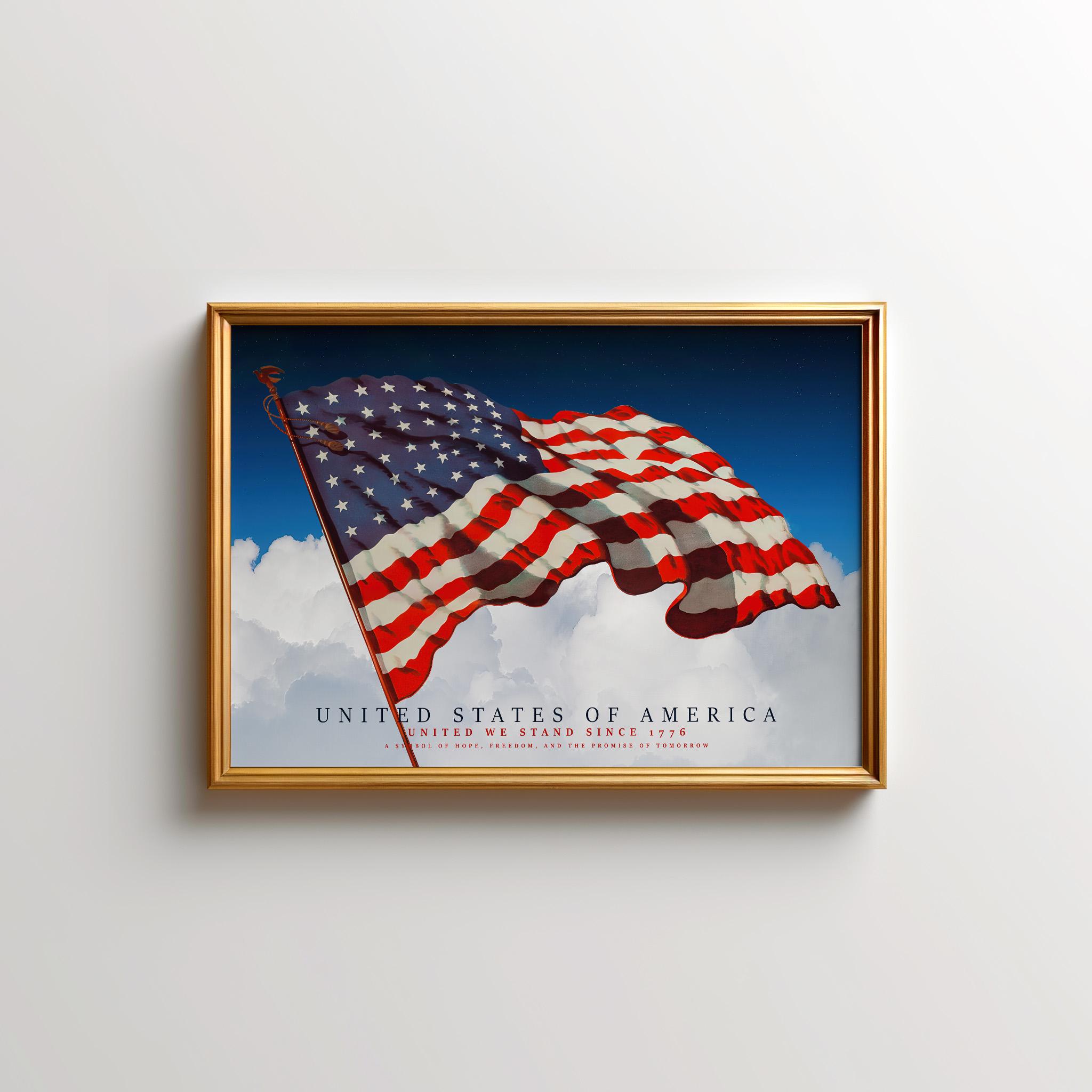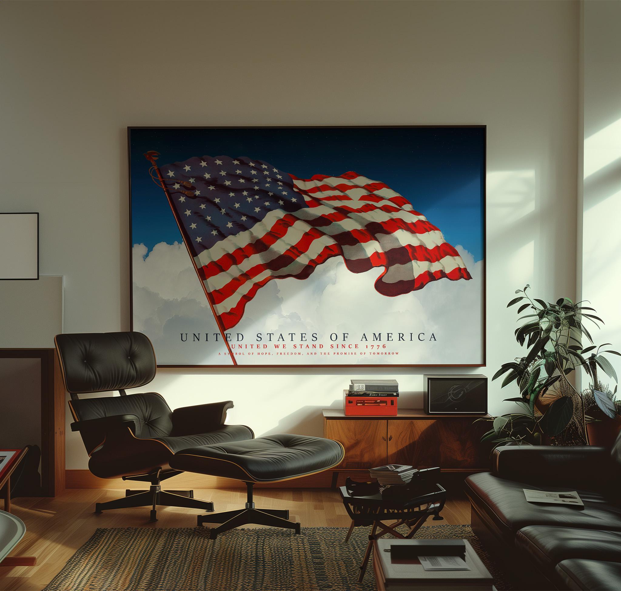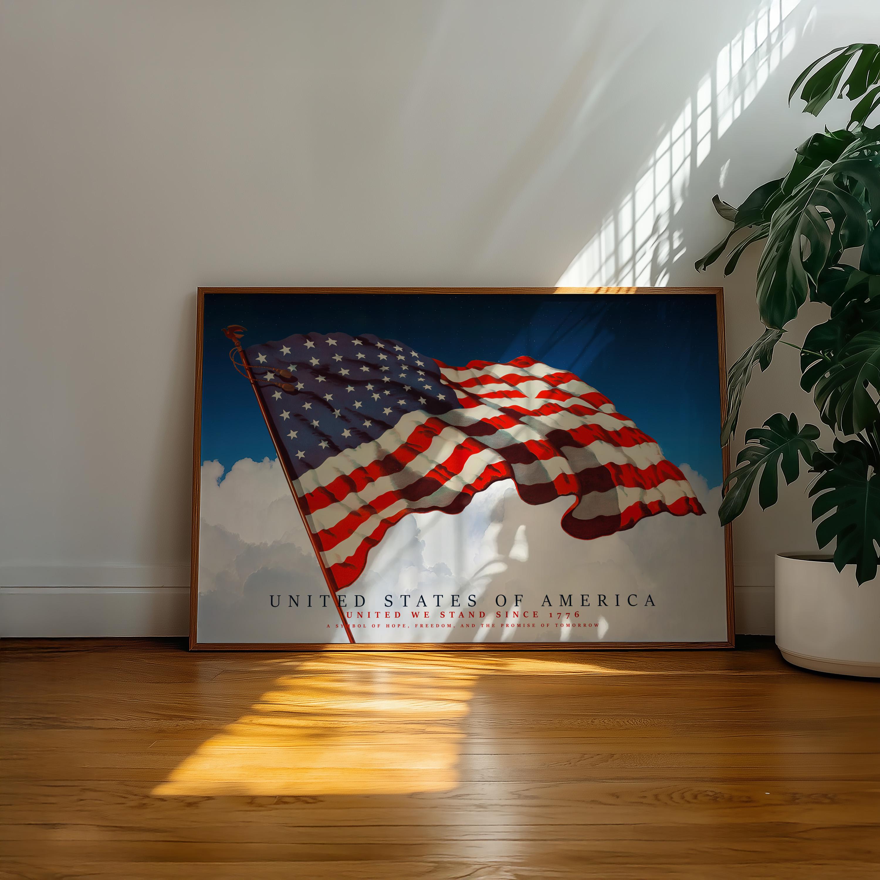 Bring a touch of American spirit into your space with this beautifully designed Stars and Stripes wall art. Featuring the iconic USA flag waving proudly in the sky, this printable artwork symbolizes unity, hope, and freedom. Perfect for home décor, offices, studios, patriotic displays, or as a meaningful gift.