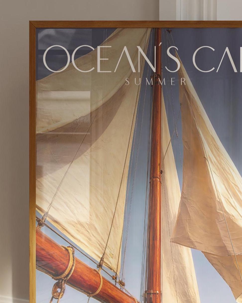 This elegant sailboat poster captures a peaceful summer moment at sea, featuring soft sails, warm wooden tones, and a clean blue sky. Perfect for creating a relaxed coastal atmosphere in your home.