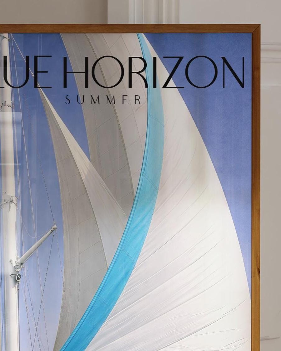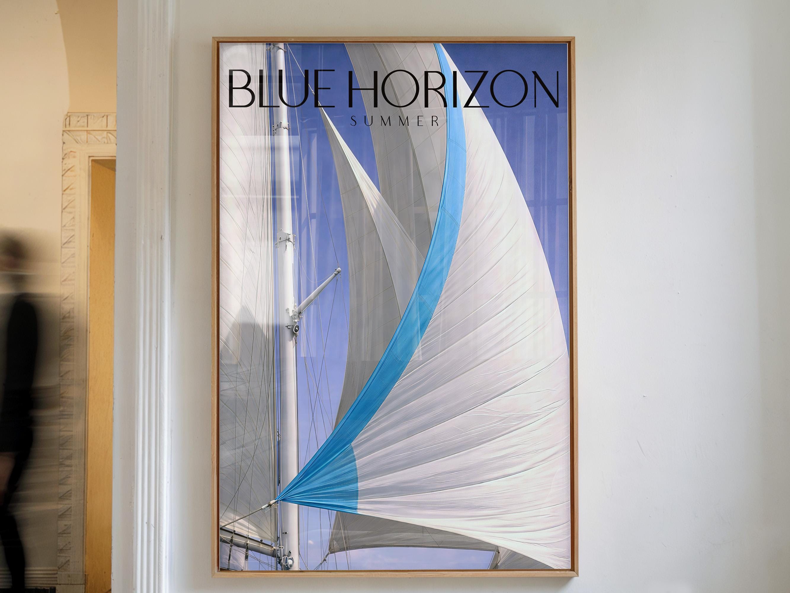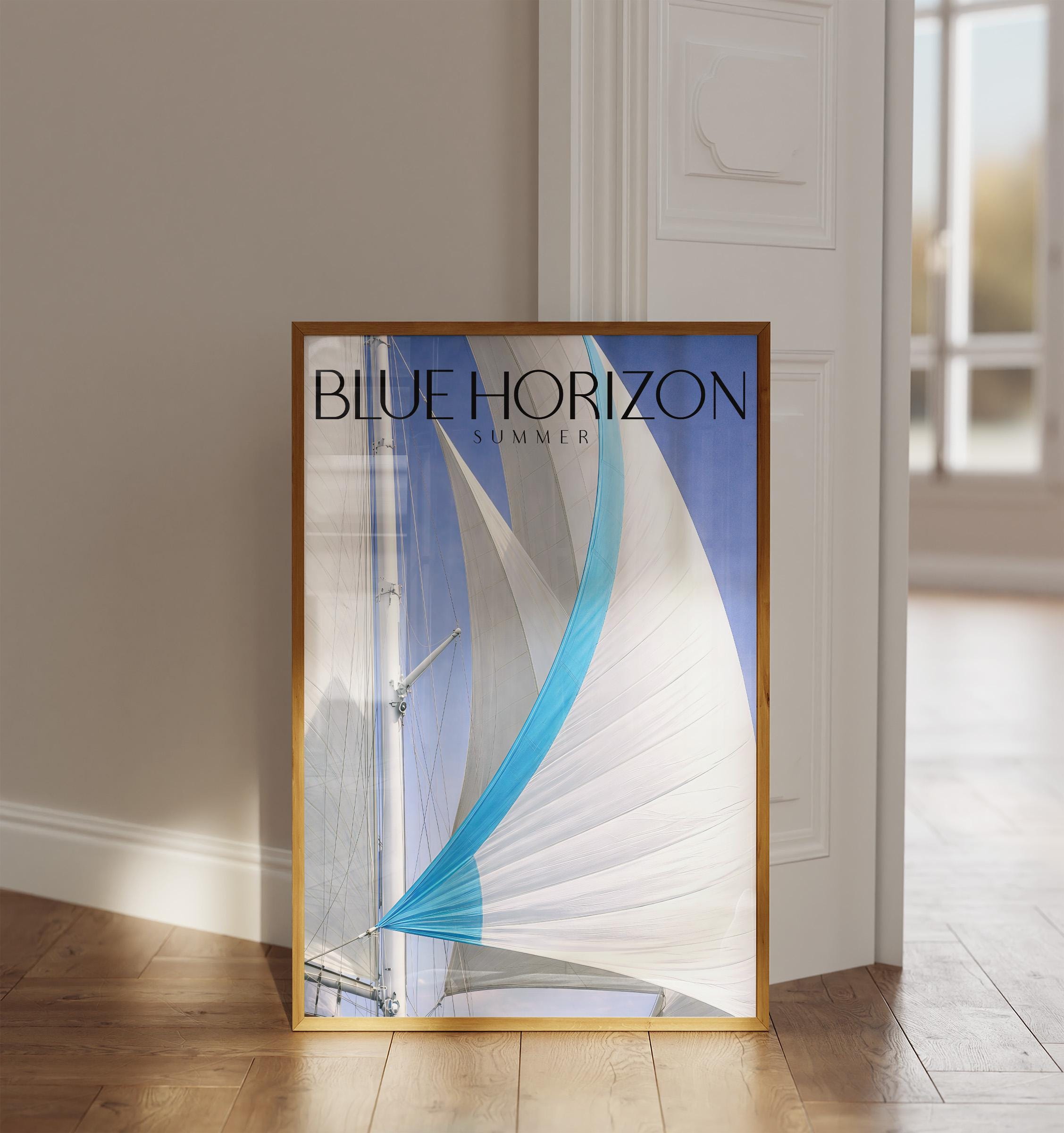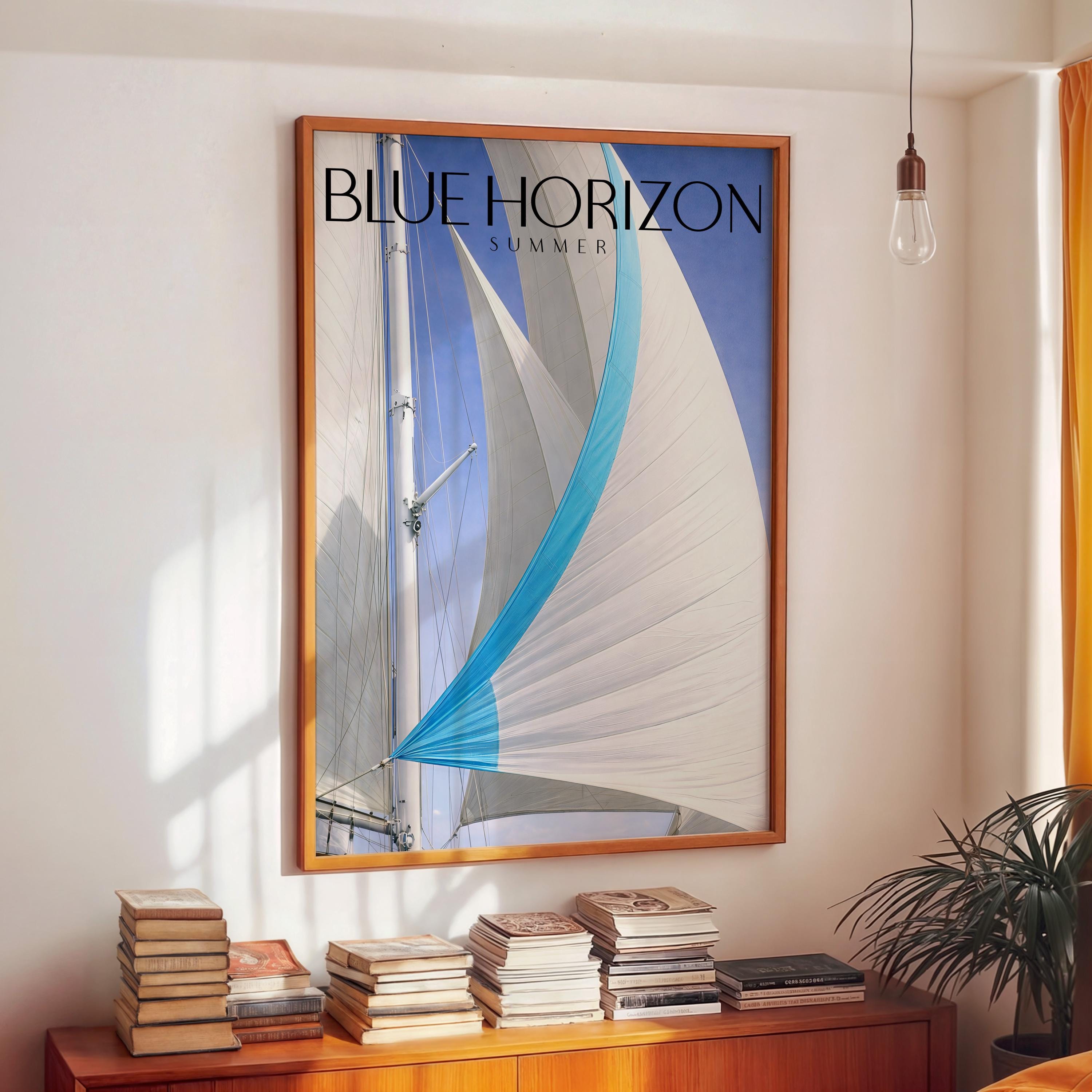 Minimal Yacht Poster Blue Sky Sail Art Coastal Wall Decor Summer Print